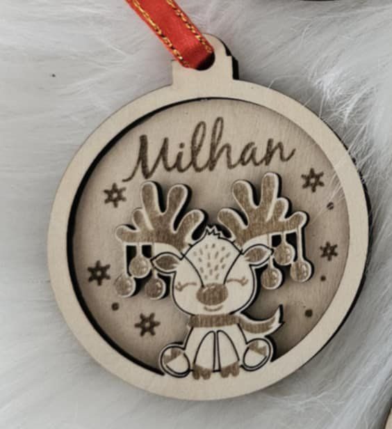 Rendez votre sapin encore plus magique avec cette jolie boule de Noël en bois gravée au laser.