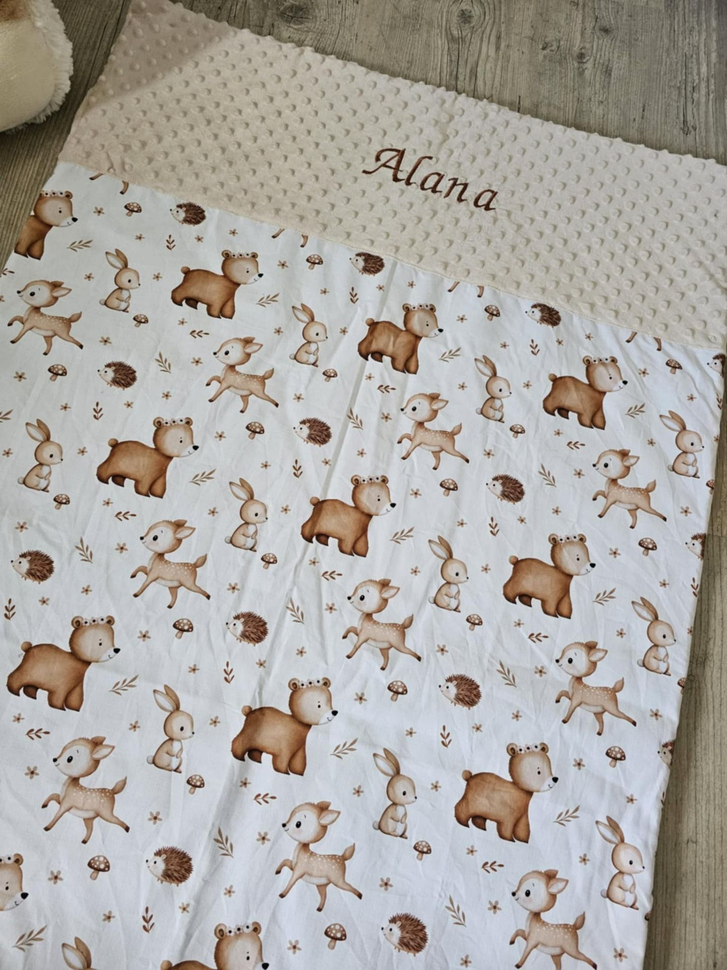 - Version hiver ; une face en tissus coton, une face en minky, rembourrage à l'intérieur